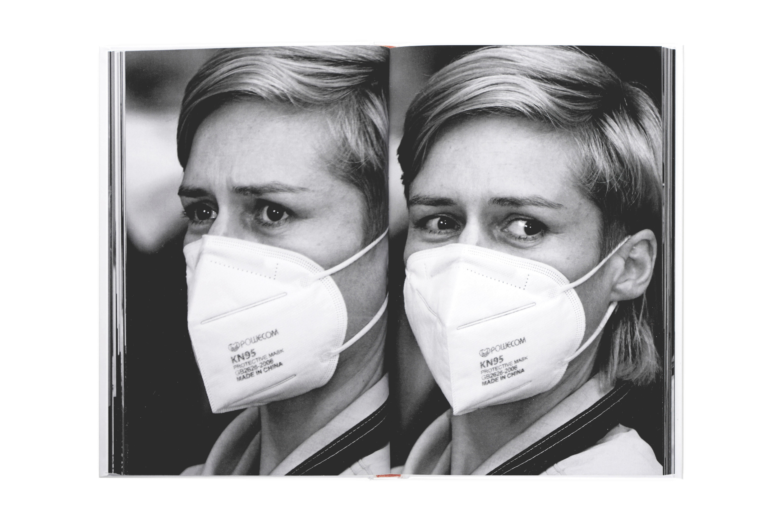 Der besondere Beitrag von Michael Mauracher bestand darin, die Personen im Saal während der Veranstaltung mit dem Teleobjektiv zu portraitieren und die Aufnahmen unmittelbar danach auf einem großen Screen als Doppelprojektion zu zeigen. – Die so entstandene Werkgruppe ist somit Teil dieser besonderen Veranstaltung in Zeiten der Pandemie und präsentiert sich hier in Form einer Künstlerpublikation.